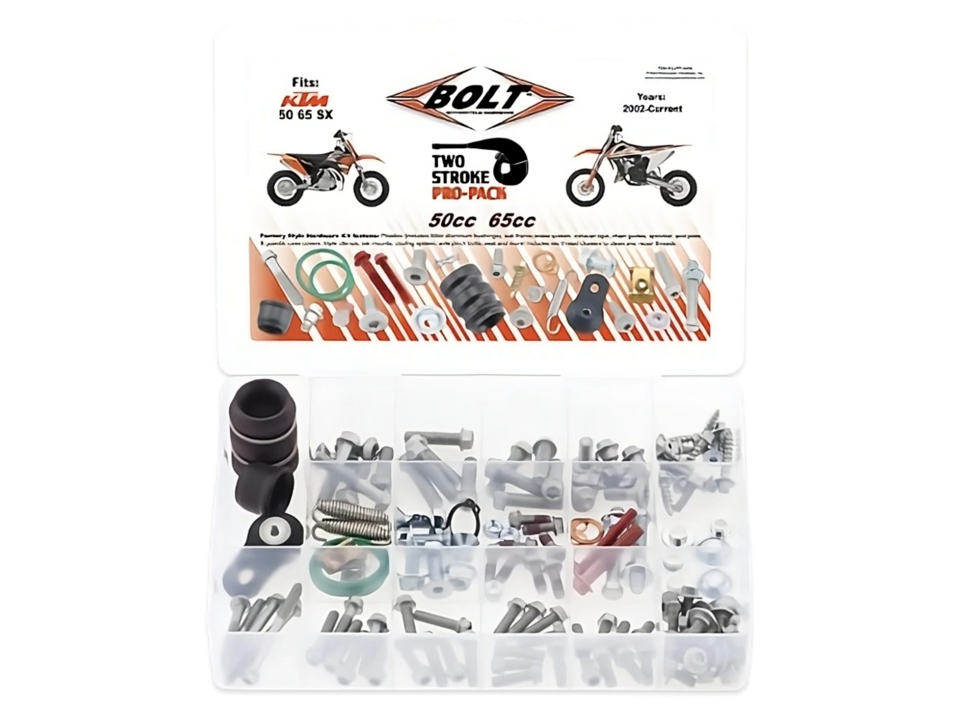 2-takter Pro sættet inkluderer også o-ringe, rør til lyddæmper kobling og fjedre og et tilpasset udvalg i sættet.