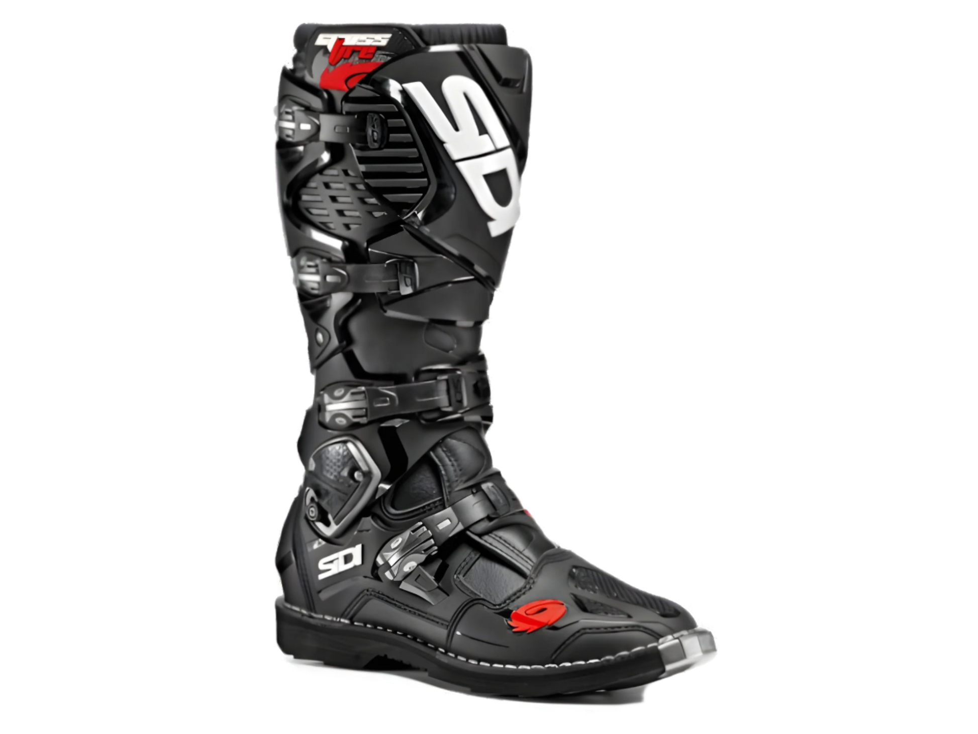 Crossfire 3's storhed, i en syet sålkonstruktion. Crossfire 3 er blevet en af de mest succesrige støvler inden for motocross, foretrukket af de stærkeste kørere på den internationale scene. Designet til at frigøre Pro-køreres fulde potentiale, leverer Crossfire 3 al den sikkerhed og støtte, som ekstrem kørsel kræver, i en utrolig fleksibel struktur, der tillader fuld vifte af bevægelser.