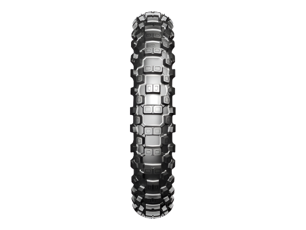 - Rear tyre features bridges to improve durability and chunking.